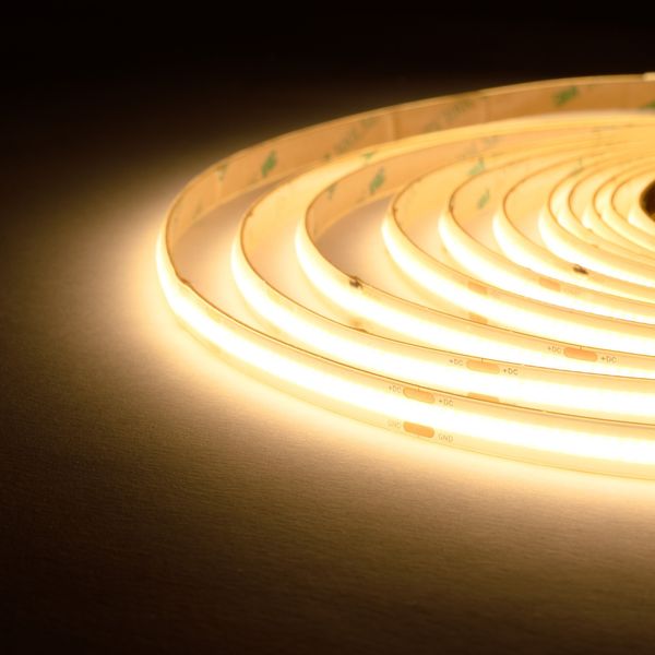 COB LED-strip med en effekt på 10 W/m til brug i både tørre og fugtige områder, ideel både til stemningsbelysning i f.eks. badeværelset og til direkte lys i generelle områder og interiører. Giver et helt ensartet lys uden synlige lyspletter! Fås med farvetemperatur 3000K eller 4000K, i ruller på 500 cm. LED-stripsen kan klippes til, forlænges og dæmpes efter behov.