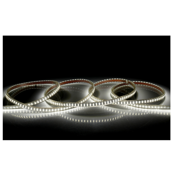 15 meter langt 230V LED-liste til krævende professionel brug, f.eks. til industriområder og byggepladser eller til hjemmebrug både indendørs og udendørs! Effekt 12W/m, 1500 lm/m. IP65-klassificering.