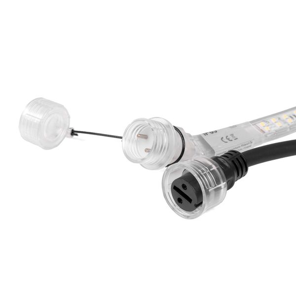 I den ene ende af LED-strippen sidder en 170 cm lang netledning med stikprop, så strippen er klar til brug. I den anden ende af strippen sidder en kobling, hvorpå strippen kan forlænges op til 100 meter eller op til 1200 W.