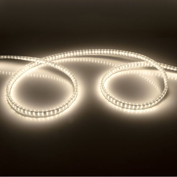 230V LED-strip med lysdioder placeret på begge sider for 360º lysspredning. Beregnet til krævende professionel brug, f.eks. i industriområder og på byggepladser, men også til hjemmebrug både indendørs og udendørs. Længde: 25 meter. Neutral farvetemperatur på 4000K og farvegengivelsesindeks Ra 80. Effekt 12 W/m. 1500 lm/m. IP65-klassificering.