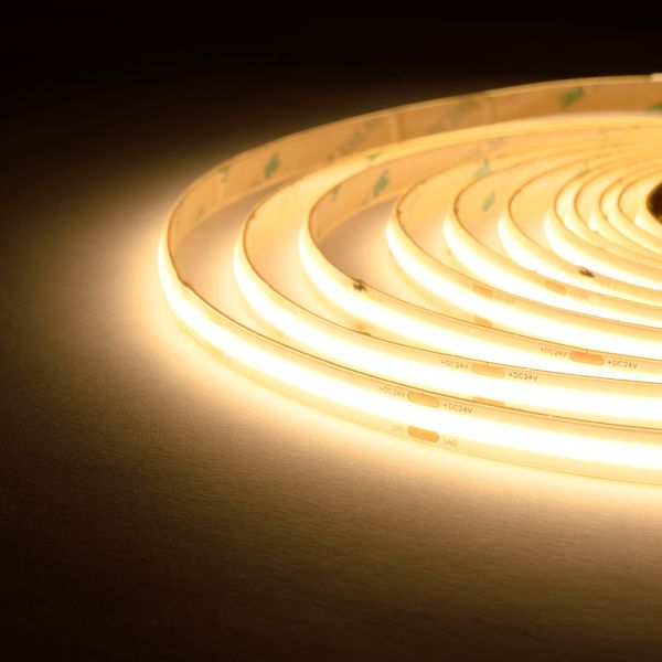 COB LED-strip med en effekt på 8 W/m til brug i både tørre og fugtige områder, ideel både til stemningsbelysning og til direkte lys i f.eks. offentlige områder og interiører. Giver et helt ensartet lys uden synlige lyspletter! Fås i farvetemperatur 3000K eller 4000K, i ruller på 250 cm eller 500 cm. LED-stripsen kan klippes til, forlænges og dæmpes efter behov.