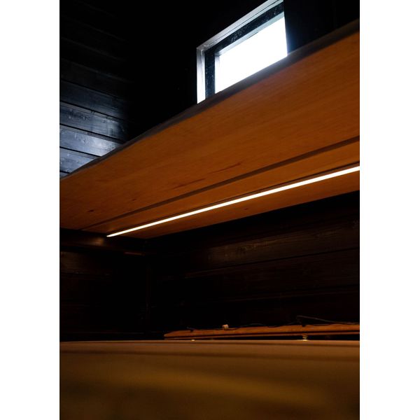 AGGE 24V LED-strip er en 8 W/m (760 lm/m) lysstrimmel af meget høj kvalitet til alle rum i hjemmet (IP65). Takket være dens effekt er den ideel til direkte belysning i alle typer offentlige rum som køkken, badeværelse eller vaskerum - f.eks. oven på skabe, langs vægge eller integreret i møbler. Den indbyggede fugtbeskyttelse gør, at stripsen kan placeres sikkert i nærheden af vandkilder, f.eks. ved håndvaske eller badeværelsesarmaturer. Den fungerer også godt som stemningsbelysning i badeværelser eller i saunaer. Dette er en såkaldt COB-strip (Chip On Board), hvilket betyder, at lyskilden er en ubrudt linje uden synlige individuelle dioder. Resultatet er et helt ensartet lys uden punkteffekter, hvilket sikrer et fuldt og ensartet lys. Båndet er dækket af ikke-gulnende silikone af høj kvalitet, som er usynlig for det blotte øje, hvilket betyder, at det også kan bruges i synlige installationer, uden at resultatet bliver grimt. AGGE 24V LED-strips fås i to farvetemperaturer: varm hvid (3000K) og neutral hvid (4000K), og de fås i længder på 250 cm eller 500 cm. Den kan klippes til, forlænges og dæmpes efter behov.