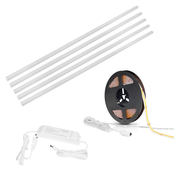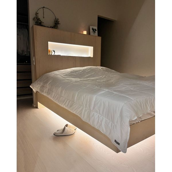Et færdigt LED-stripssæt designet til belysning under sengen eller ved hovedgærdet. Indeholder LED-strip, transformer og monteringsprofiler. Fås i varm 3000K eller neutral 4000K farvetemperatur, 500 cm rulle. Både LED-strips og monteringsprofiler kan afkortes, så de passer til dine behov.