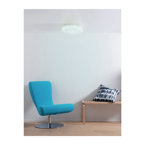 Smuk diamantformet loftslampe, der kan bruges i alle tørre interiører i hjemmet, såsom soveværelset. Lampen har justerbar farvetemperatur og lysstyring via fjernbetjening. Oplyst lysflow 1600 lm, farvetemperatur 2700 - 6500 K.