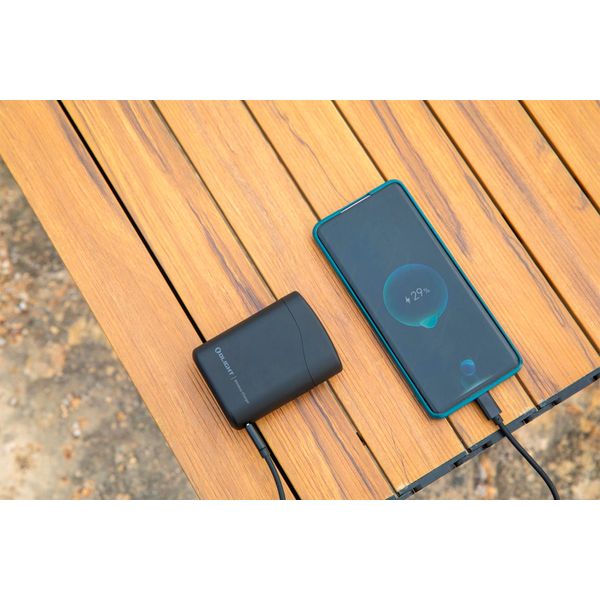 Batteriindikator: Lampen er udstyret med en batteriindikator, som viser i forskellige farver, hvor meget batteri der er tilbage. Når lyset er tændt, viser indikatoren den resterende opladning: