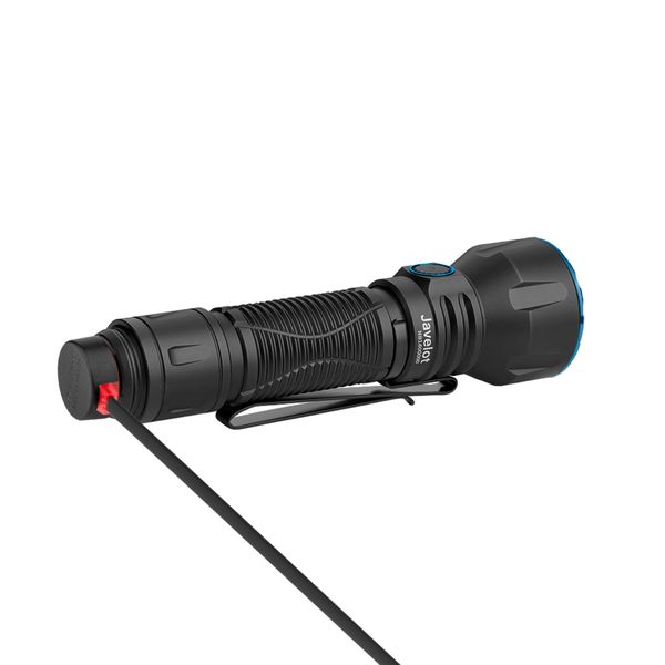 Brugen af lampen er designet til at være så ukompliceret som muligt, hvilket fremgår af dens kompakte størrelse, lette struktur, holdbarhed og enkle dispenser-interface. Lampen er udstyret med to forskellige kontakter: Den taktiske kontakt kan bruges til hurtigt at aktivere enten den laveste eller højeste strømtilstand til lejlighedsvis brug, mens sidekontakten på siden af lampen kan bruges til at styre alle strømtilstande og blitzen. Javelot drives af et højtydende 5000 mAh Li-ion-batteri, og den bageste kontakt fungerer som en magnetisk opladningsport, der gør det nemt at oplade, mens batteriet stadig sidder i lampen. Det medfølgende ladekabel fastgøres til bagcoveret, hvilket gør opladningen meget nem og problemfri!