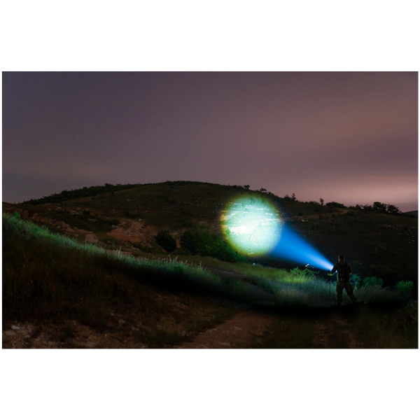 En utrolig kraftig kompakt lommelygte med smal eller bred stråle og RGB-farver, der kan vælges med en switch og oplyser et ufatteligt stort område på én gang! Nominelt lysflow 7000 lm, rækkevidde 600 m. IPX8-klassificeret. VI ANBEFALER!