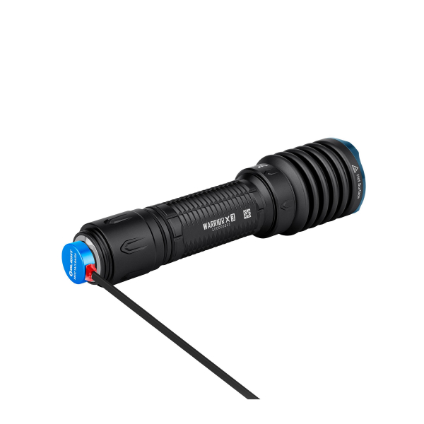 Det store 5000 mAh 21700-batteri giver en batterilevetid på mere end to timer ved fuld effekt, og med en lavere effekt på 300 lumen lover producenten en batterilevetid på 8 timer. Batteriet oplades nemt via USB-stikket med den praktiske magnetiske oplader, som blot klikkes fast i bunden af lampen. Opladningen går fra nul til 100 på ca. 3 timer. Den velkendte "vibrationsindikator" fra sine forgængere er også til stede på Warrior X, hvilket betyder, at lampen vibrerer hvert femte minut, når batteriet falder under 30 %. Når batteriniveauet falder til under 10 %, vibrerer den en gang i minuttet, og når batteriniveauet er under 5 %, vibrerer lampen hvert 10. sekund.