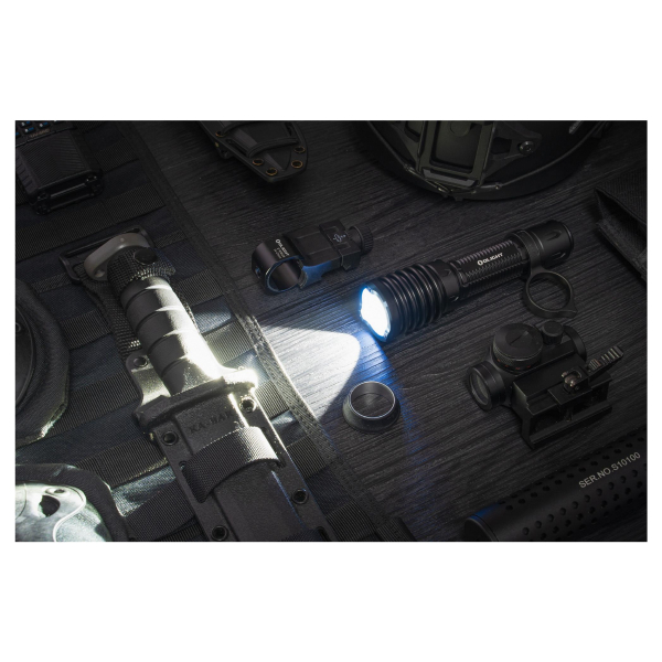 Lygtens hård-anodiserede aluminiumhus og stålramme, der beskytter linsen, gør den perfekt til krævende forhold. Stålrammen fungerer også til at bryde glas, hvis det skulle være nødvendigt. Lygten er IPX8-klassificeret og kan nedsænkes i vand til en dybde på to meter. Lygten leveres med både en taktisk grebsring og en såkaldt Warrior Ring, som gør det muligt at "fastgøre" lygten til din finger og forhindrer den i at falde ned ad bakke, selv hvis grebet på lampen bliver løst. Desuden gør kontaktens design det muligt at bruge Olights innovative låsesystem, som låser den magnetiske fjernbetjeningskontakt på plads og ikke løsnes af rekylens kraft. De smarte funktioner gør det muligt at bruge den som en normal og meget pålidelig lommelygte, men også som en mere avanceret taktisk lommelygte til f.eks. jagt- eller sikkerhedssektoren.