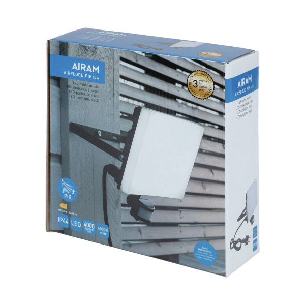 Airam Airflood PIR er en moderne og let struktureret LED-lampe med bevægelsessensor, perfekt til belysning af gård, bygninger, gangveje og endda parkeringspladser. Takket være det kantløse design passer lampen elegant på facaden på forskellige bygninger og frontpanelet giver et behageligt jævnt lys over hele overfladen. Takket være den justerbare vinkel kan lyset rettes til den ønskede plads. Alle lamper i Airflood-serien er, i henhold til kapslingsklasse IP44, støv- og vandtæt, hvilket indebærer at de klarer forskelligt vejr og frost og er god til brug året rundt. Et gummikabel af høj kvalitet gør tilslutningen mere enkel. Tre års garanti.