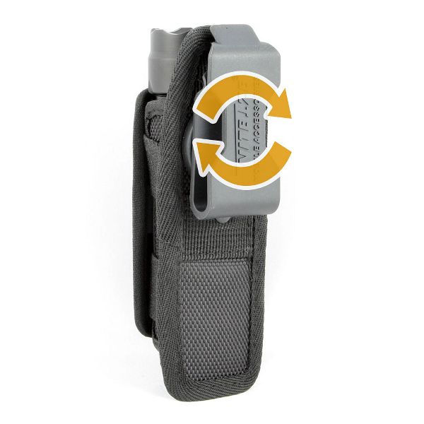Roterbar hylster i 8 faste positioner, passer til næsten alle lommelygter. Elastisk materiale gør det muligt for lommelygter i alle størrelser at passe sikkert i hylsteret. Udviklet i USA!