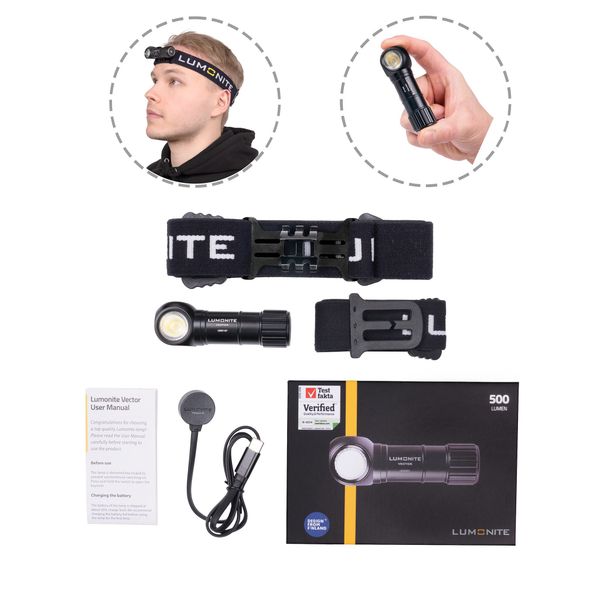 LUMONITE Vector V2 er en opdateret version af den superpopulære Vector-spotlight, der er designet i Finland. Vector V2 er en helt suveræn pandelampe/multi-purpose-armatur i sin størrelsesklasse, både hvad angår ydeevne og funktionalitet, udviklet specielt til hjemmebrug, udendørs mobilitet og daglig professionel brug. Vector er lille, let og uhøjtidelig og har vundet pandelampetesten på det svenske sammenligningssite Testfakta.se, og den opdaterede V2-version tager lampens prisbelønnede ydeevne til endnu et niveau. Som andre LUMONITE-armaturer er Vector V2 også ekstremt brugervenlig og holdbar, og når disse egenskaber kombineres med lange brændetider og en bred, jævn lysstråle, er dens popularitet let at forstå. Derudover giver det brede udvalg af tilbehør næsten uendelige muligheder for brug: Vector V2 kan monteres på en cykelstang, en cykelhjelm, en arbejdshjelm eller en ridehjelm!