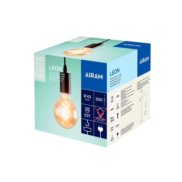 Obs! Airam Leon kan bestilles som en pakke med Airam Globe Filament - 2700K / 2 W eller Airam Filament Edison - 2200K / 4,9W