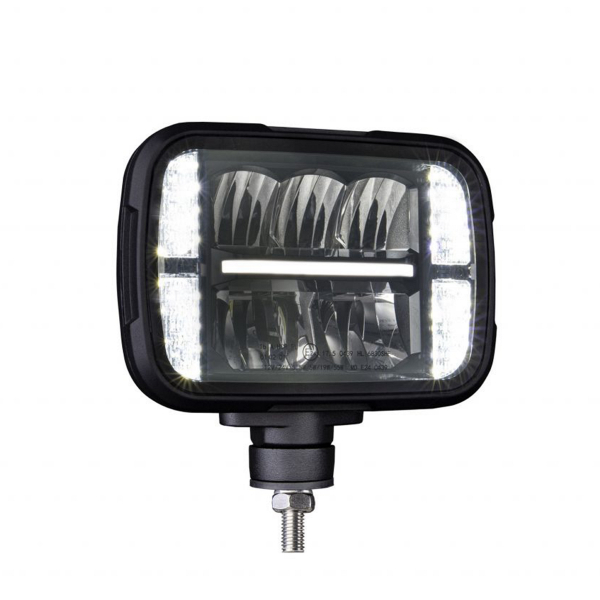 E-mærket pløjelampe med opvarmet linse. Slidstærk lampe som passer til krævende brug. Langt og kort parkeringslys. Producentens rapporterede lysflow er 1380 lm (langt), 1008 lm (kort).