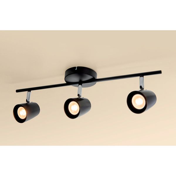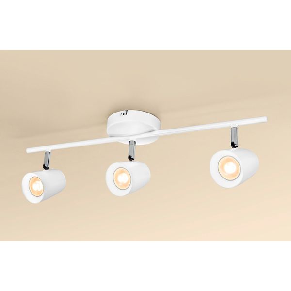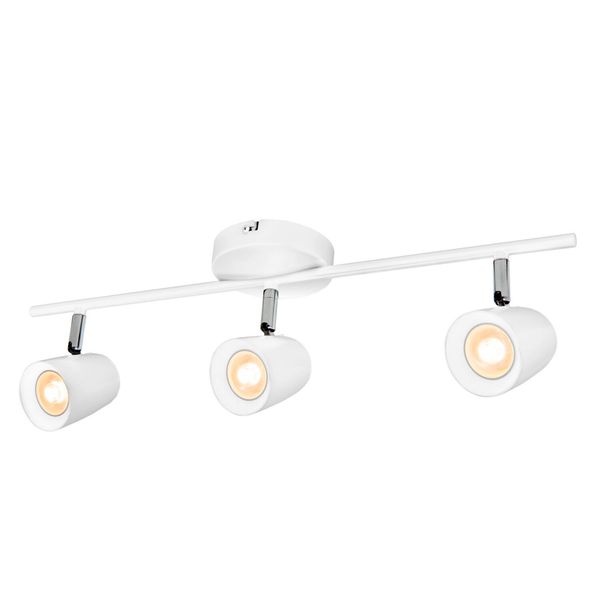 Spotlys i skandinavisk stil med tre udskiftelige GU10-pærer til tørre miljøer i hjemmet. Ved at dreje lampeskærmene kan spottene rettes, så de f.eks. fremhæver detaljer i indretningen. Fås i sort eller hvid.