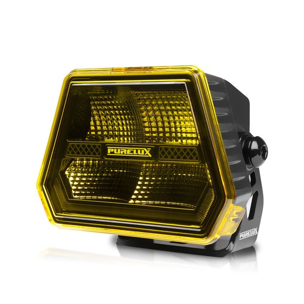 Holdbar stenslagsbeskyttelse til Purelux Panther Alpha 60-arbejdslampen. Den sorte stenslagsbeskyttelse kan bruges om sommeren til at beskytte linsen mod f.eks. sand, ridsende grene, stenslag og andre faktorer, der slider på linsen, eller den kan bruges af rent stilistiske årsager, når arbejdslampen ikke er i brug. Ud over at beskytte linsen ændrer den gule stenslagsbeskyttelse lygtens farve til gul, hvilket forbedrer sigtbarheden under dårlige vejrforhold som sne, kraftig tåge eller regn.