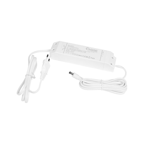 Transformer AGGE 12V, IP20 er en indendørs adapter, der kan bruges til at tilslutte f.eks. LED-strips eller andet lys, der drives af 12V. Fås i to varianter: 40W og 75W, afhængigt af antallet af enheder, der skal forsynes med strøm (enhedernes samlede effekt må ikke overstige transformatorens kapacitet). Transformatoren kan også bruges som strømkilde i faste installationer, ved først at fjerne strømkablet. Transformeren leveres med en 100 cm langt strømkabel med EU-stik og et 150 cm langt DC-kabel med han-stik.