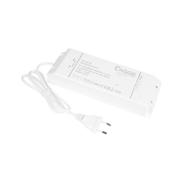 Transformer AGGE 24V, IP20 er en indendørs adapter, der kan bruges til at tilslutte f.eks. LED-strips eller anden belysning, der drives af 24V. Fås i flere versioner: 30W, 60W, 75W, 100W, 150W og 320W, afhængigt af antallet af enheder, der skal forsynes med strøm (enhedernes samlede effekt må ikke overstige transformatorens kapacitet). Transformatoren kan også bruges som strømkilde i faste installationer, ved først at fjerne strømkablet. Transformeren har en 100 cm lang netledning med EU-stik og et 150 cm langt jævnstrømskabel med han-stik.