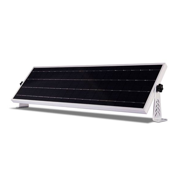 En universal lampe med en bevægelsesdetektor og en bred og kraftig lysbillede, som får sin strøm direkte fra solen via en solcelle. Den er f.eks. velegnet til et sommerhus uden elektricitet, byggepladser eller andre steder, hvor det er svært at få strøm. Oplyst lysflow 2500 lm. Kapslingsklasse IP65.