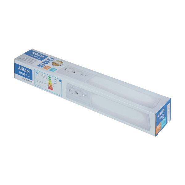 Airam Handy er et universallys til montering på overfladen, der er velegnet til alle tørre indvendige rum i hjemmet, f.eks. køkkenområder eller til belysning af arbejdsflader. Lyset har en todelt jordet stikdåse med afbryder, som kan bruges til at styre dem manuelt. Du kan vælge enten 3000 K eller 4000 K farvetemperatur fra Handy-lampen før installationen, så den giver det rigtige lys til det rum, der skal installeres. Handy light-serien omfatter fire lys i forskellige størrelser, som kan sættes i serie med 4 x 2,5 mm² kabler. Angivet lysflow på 500 lumen med en farvetemperatur på 3000 / 4000 Kelvin.