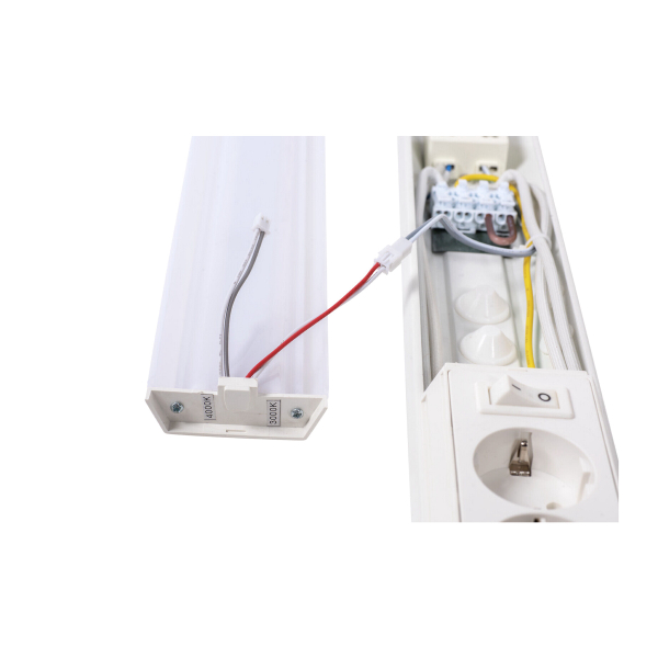 Universal lys til alle tørre rum i hjemmet, f.eks. køkkenet eller vaskerummet, der kan monteres på overfladen. Lyset har en todelt jordet fatning med afbryder. Lysflow på 1200 lm, ifølge producenten. Farvetemperatur 3000/4000 K.