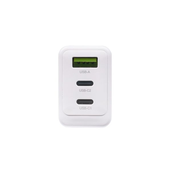 En højtydende USB-oplader, der kan bruges til at oplade op til tre forskellige enheder på samme tid! Opladeren har to USB-C-opladningsporte og en USB-A-port. Beskyttet mod overopladning, overspænding og kortslutning.