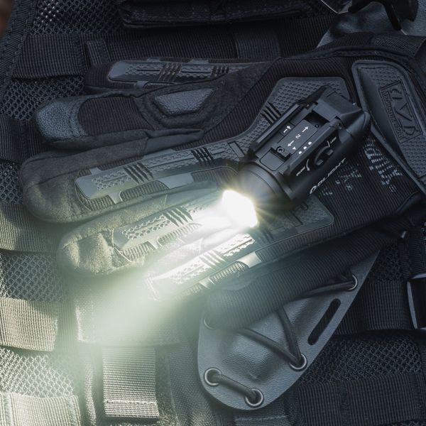 Genopladeligt og kraftigt våbenlys, der passer til både Picatinny- og GLOCK-skinner. Takket være den dobbelte kontakt kan lygten bruges fra begge sider. Angivet lysflow 1500 lm, rækkevidde 205 meter.