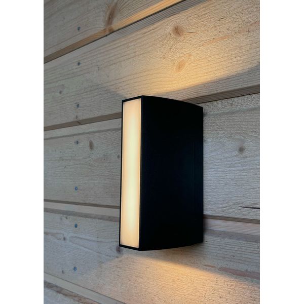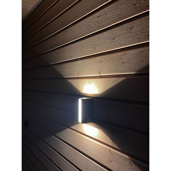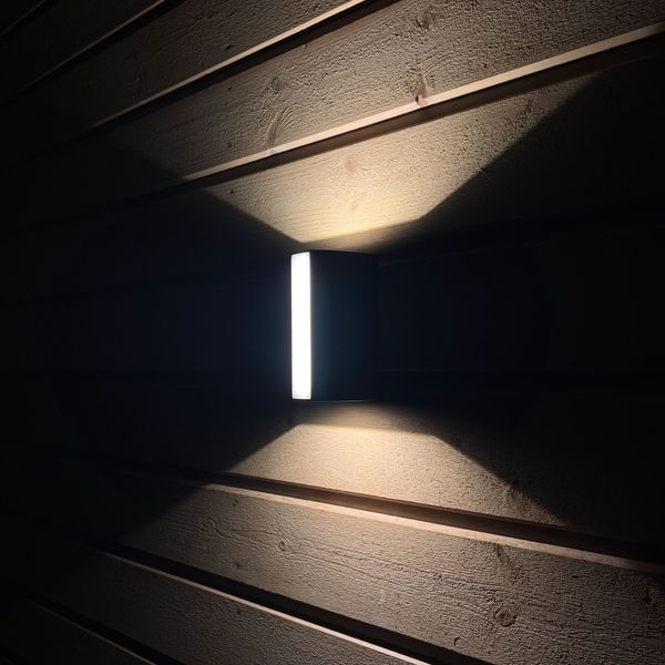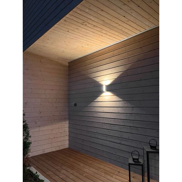 Moderne facadebelysning til både indendørs og udendørs brug, som spreder lys op, ned og til siderne. Deklareret lysstrøm 465 lm, varm 3000K eller neutral 4000K farvetemperatur. Kapslingsklasse IP65.