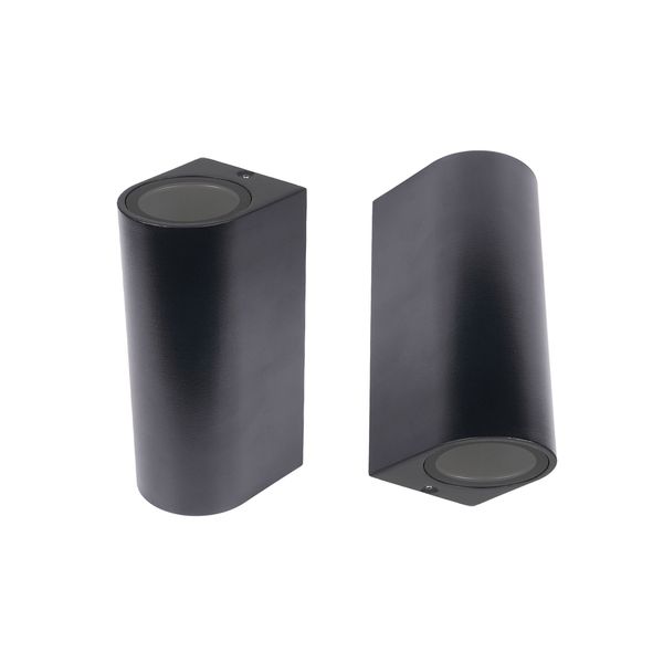 En væglampe der giver både opadrettet og nedadrettet belysning og bruger udskiftelige lamper med GU10-sokkel. Det slanke og stilfulde design gør den velegnet til både indendørs og udendørs brug med en IP54-klassificering.