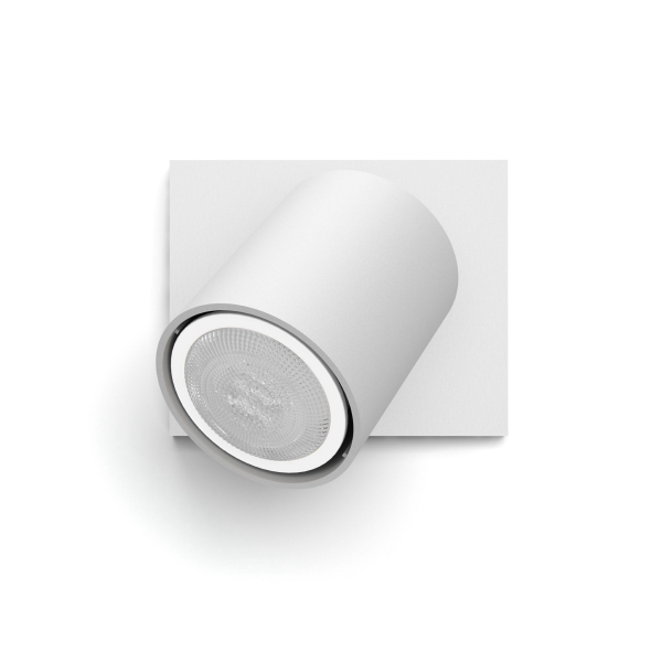 En spotlys-lignende væglampe med en Philips Hue smart LED-lampe med GU10-sokkel. Styres via telefon eller Hue Bridge. Deklareret lyssflow 400 lm, farvetemperatur 2200 - 6500 K. Kapslingsklasse IP20.