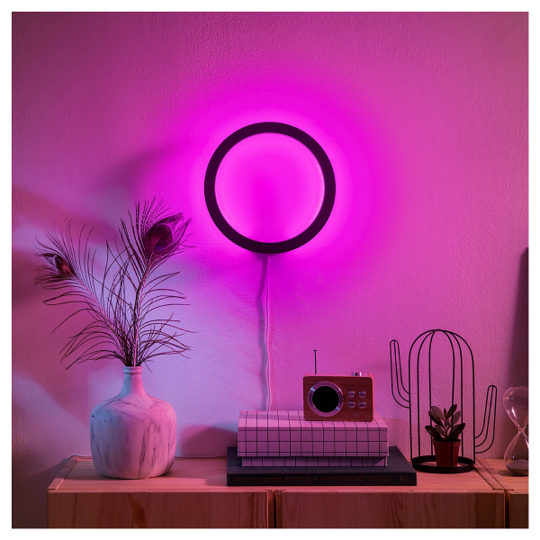 Philips Hue Sana er en stilfuld og moderne væglampe til tørre rum i hjemmet, som kan styres via Philips Hue-appen. Sana-lampen skaber indirekte lys bag den og er ideel til generel belysning og stemningsbelysning i hjemmet. Lysets farve kan justeres fra lys til millioner af andre nuancer, hvilket gør det nemt at skabe den perfekte stemningsbelysning til enhver situation. Lampen kan enten styres via en smartphone, eller den kan tilsluttes Philips Hue Bridge, så den kan justeres sammen med andre Hue-lamper via Hue-appen. Philips Hue-lamperne fungerer problemfrit med smart tilbehør som Hue-dæmperen eller Hue-smartknappen, og de kan desuden tændes og slukkes med en almindelig kontakt. I dette tilfælde beholder lampen den seneste lysindstilling. Lampen er nem at installere og kan tilsluttes direkte til stikkontakten med det medfølgende strømforsyning. Oplyst lysflow på 1400 lumen, farvetemperatur 2000 - 6500 Kelvin. Findes i hvid eller sort. To års garanti!